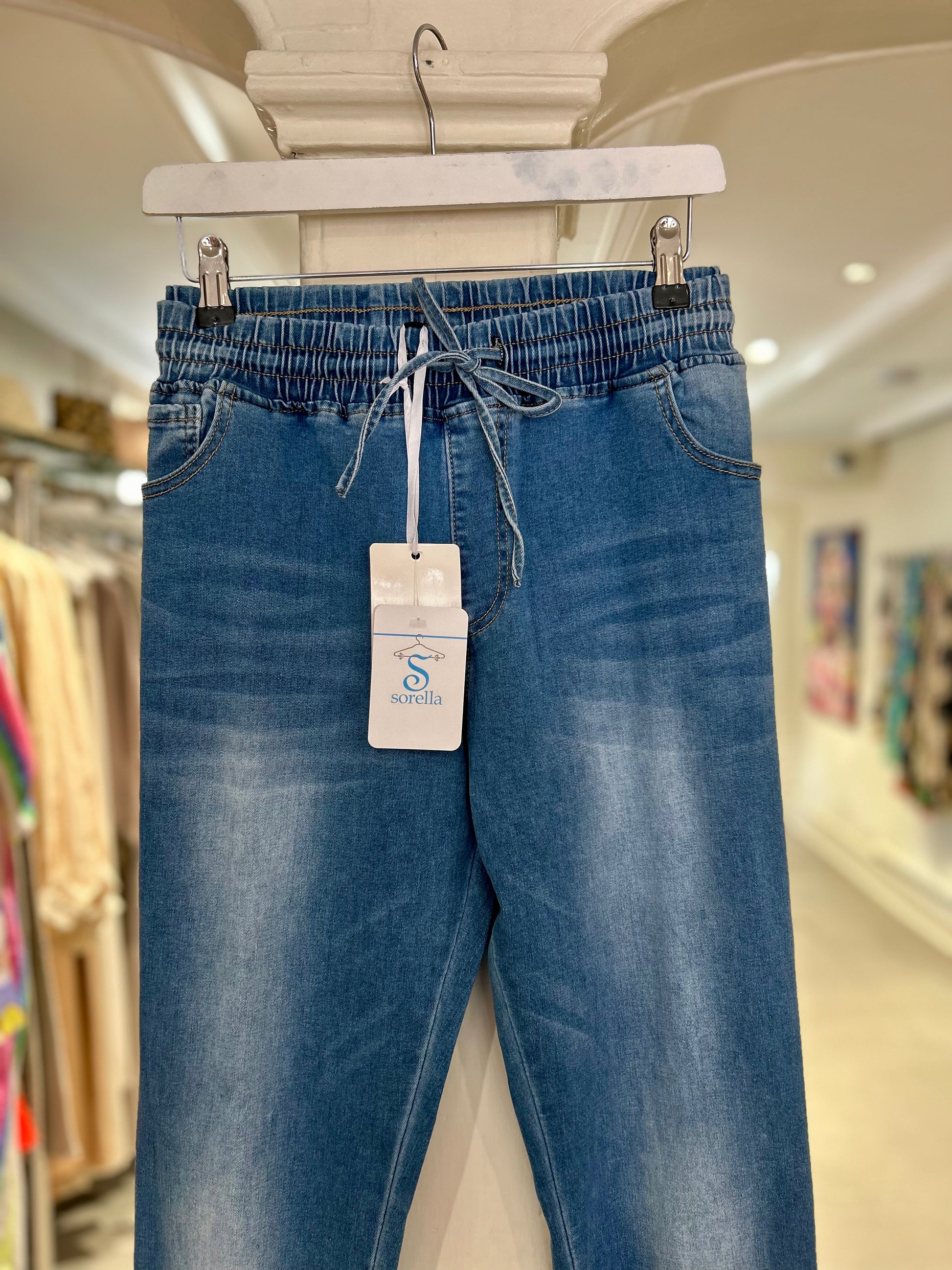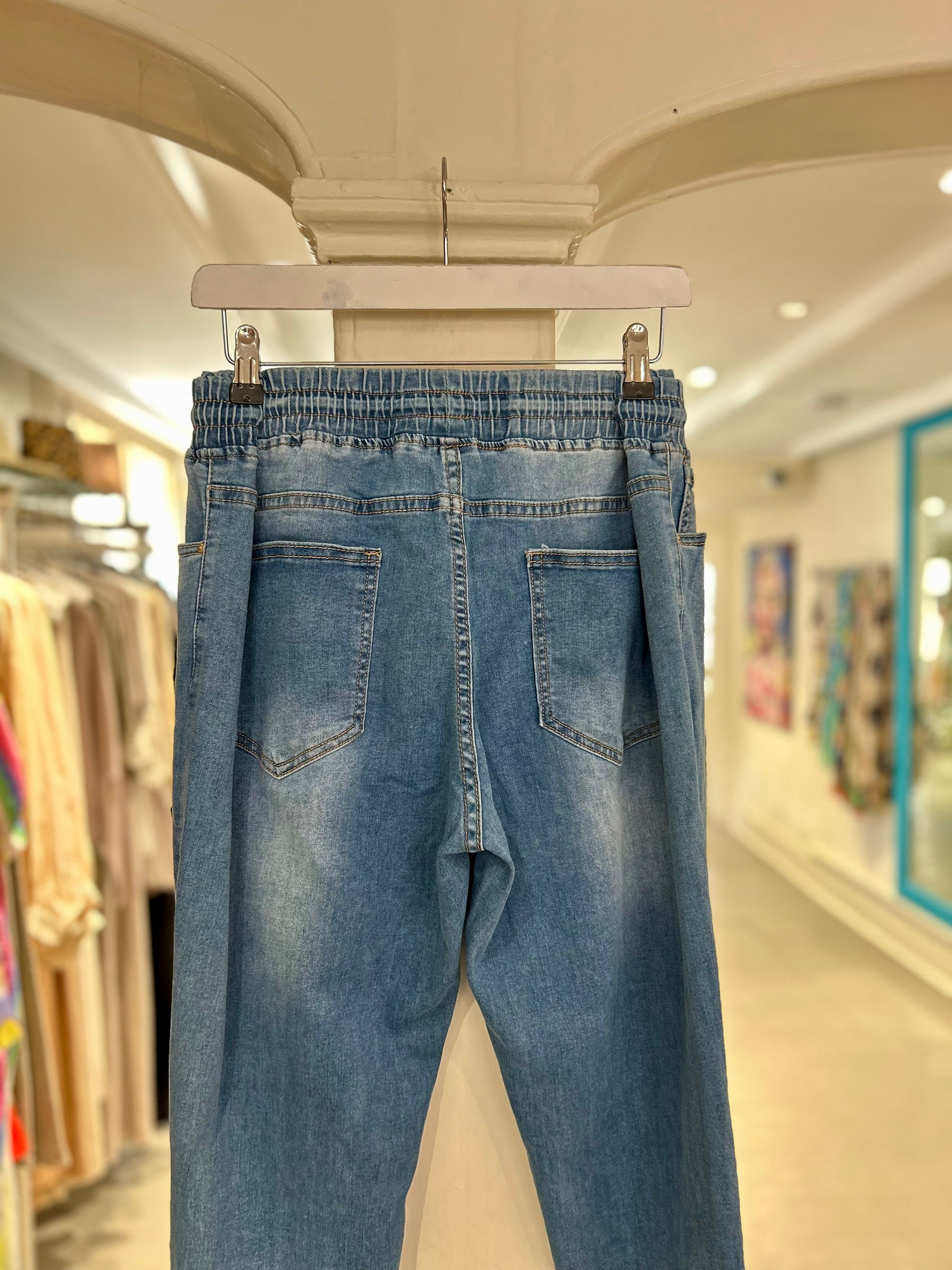 Introducing our High Waisted Boyfriend Jeans with Elastic Waist! These jeans are designed to flatter your figure by sitting at the natural waistline and featuring a comfortable elastic waistband. Made in a stylish mid wash, these jeans are perfect for any occasion. Get the perfect combination of style and comfort with our High Waisted Boyfriend Jeans.