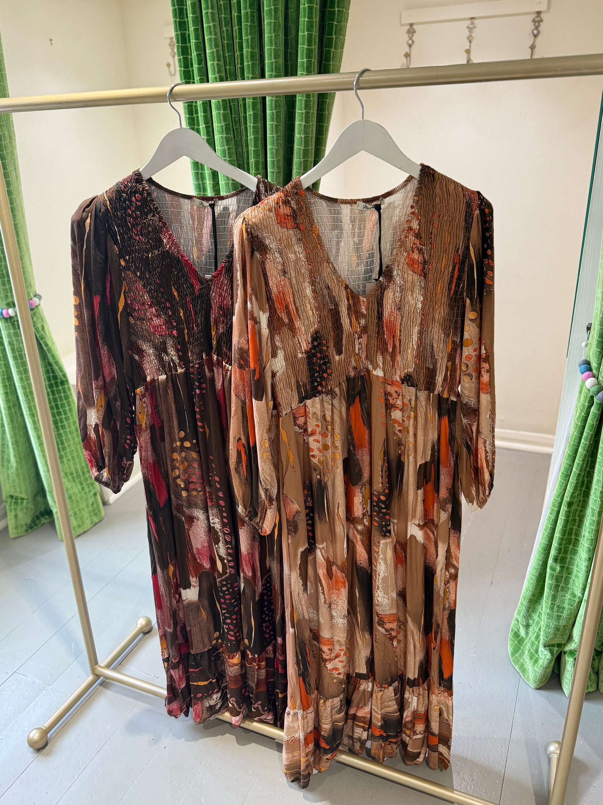 This Printed Maxi Dress features a flattering V neckline and a stretchy fabric designed to comfortably fit and flatter all body types. Its flowing silhouette offers elegance and ease, making it an ideal choice for various occasions. Available in two versatile colours, this dress combines classic style with adaptable comfort.
